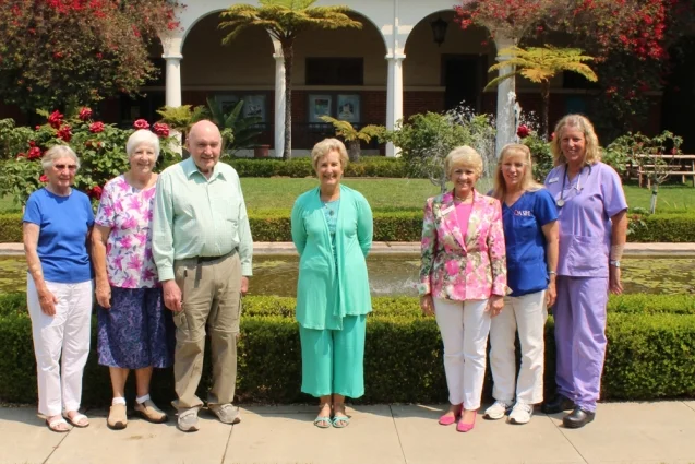 Volunteer Award honorees, from left, Muriel Ross, Ann Smithcors and Joe Jowell; Legacy Award recipient Dana VanderMey, center, and Partnership Award honoree DASH (Doctors Assisting Seniors at Home) represented by Jeanne West, Carolynn Allen and Liz Orr. (Hospice of Santa Barbara photo)
