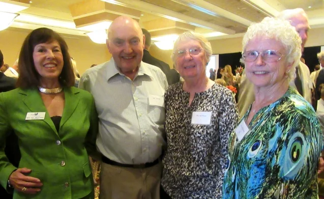 From left, Hospice of Santa Barbara volunteer Nina Del Baccaro, awardees Joe Jowell and Muriel Ross, and Arlene Radasky. (Rochelle Rose / Noozhawk photo)